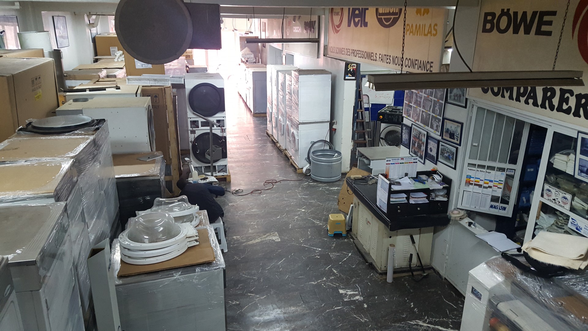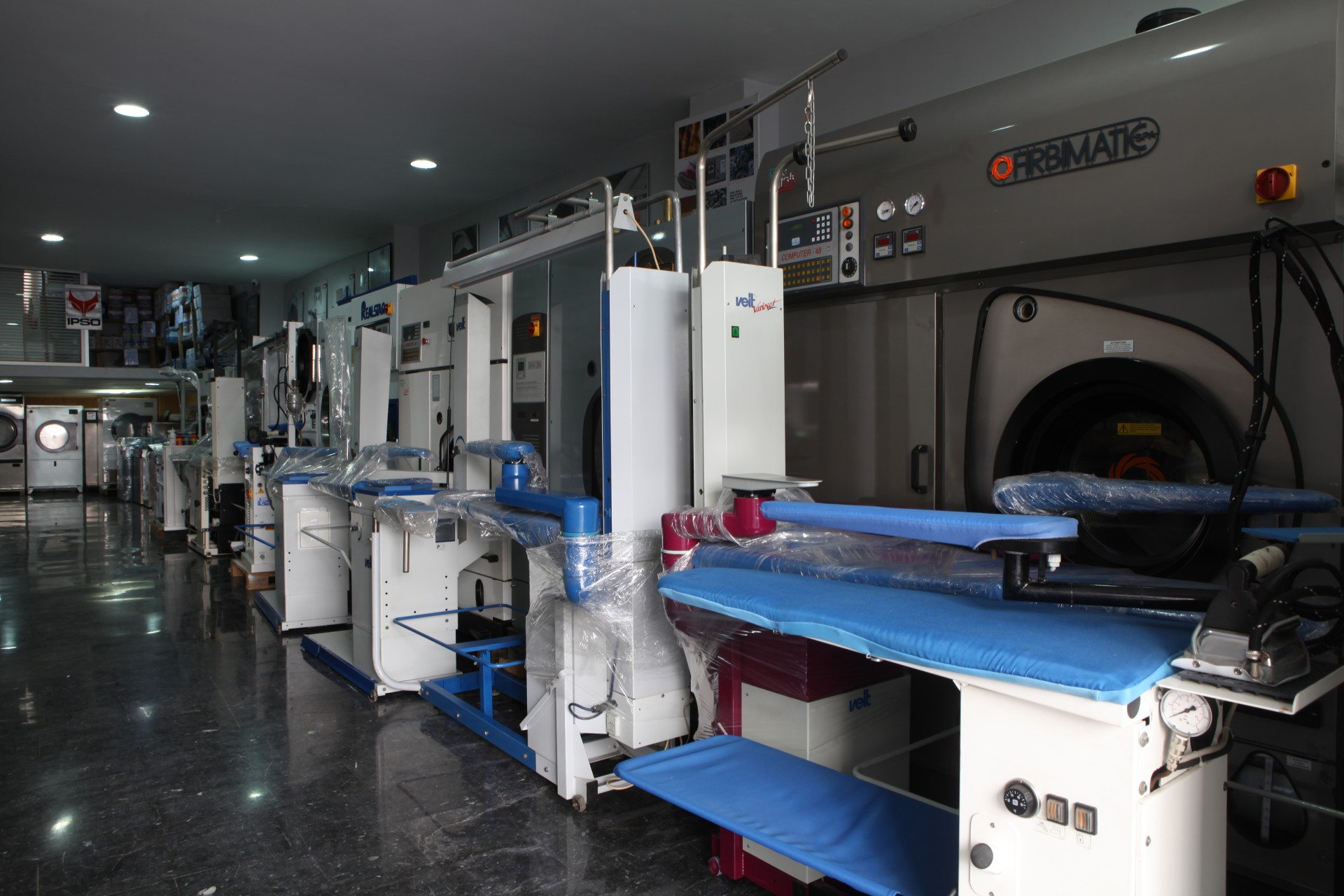 Deux show-room de 500 m² contenant ± 250 machines en stock pour pressing, blanchisserie et laverie. Vous y trouverez les marques les plus prestigieuses du marché de machines neuves et machines rénovées à savoir :